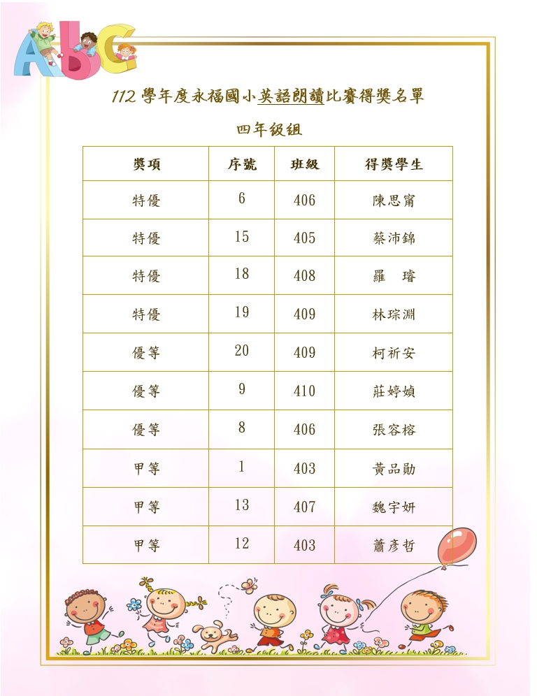 🎉🎉112永福國小英朗讀比賽得獎名單