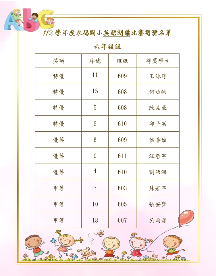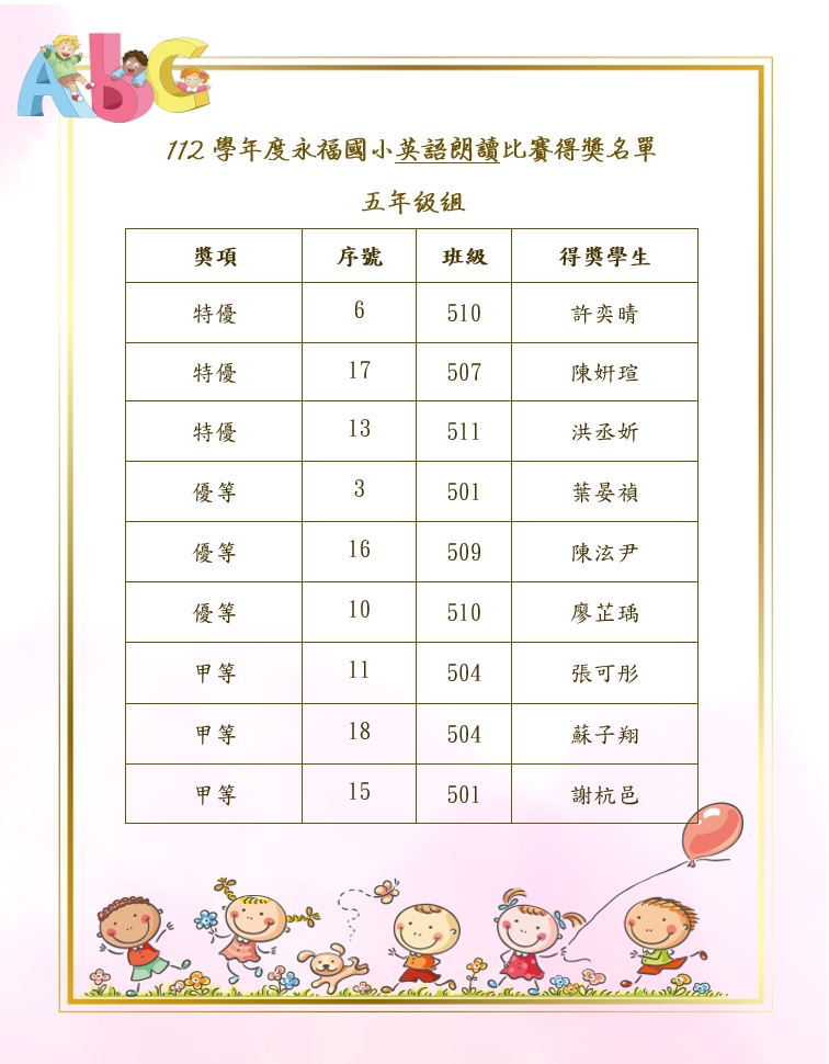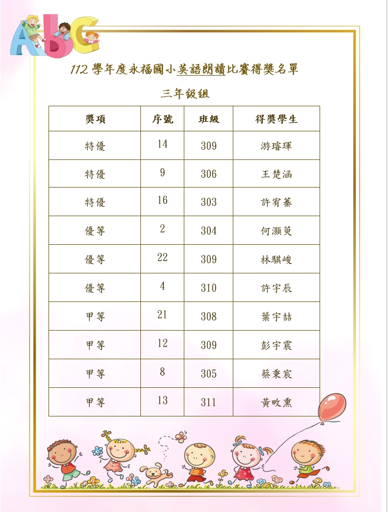 🎉🎉112永福國小英朗讀比賽得獎名單