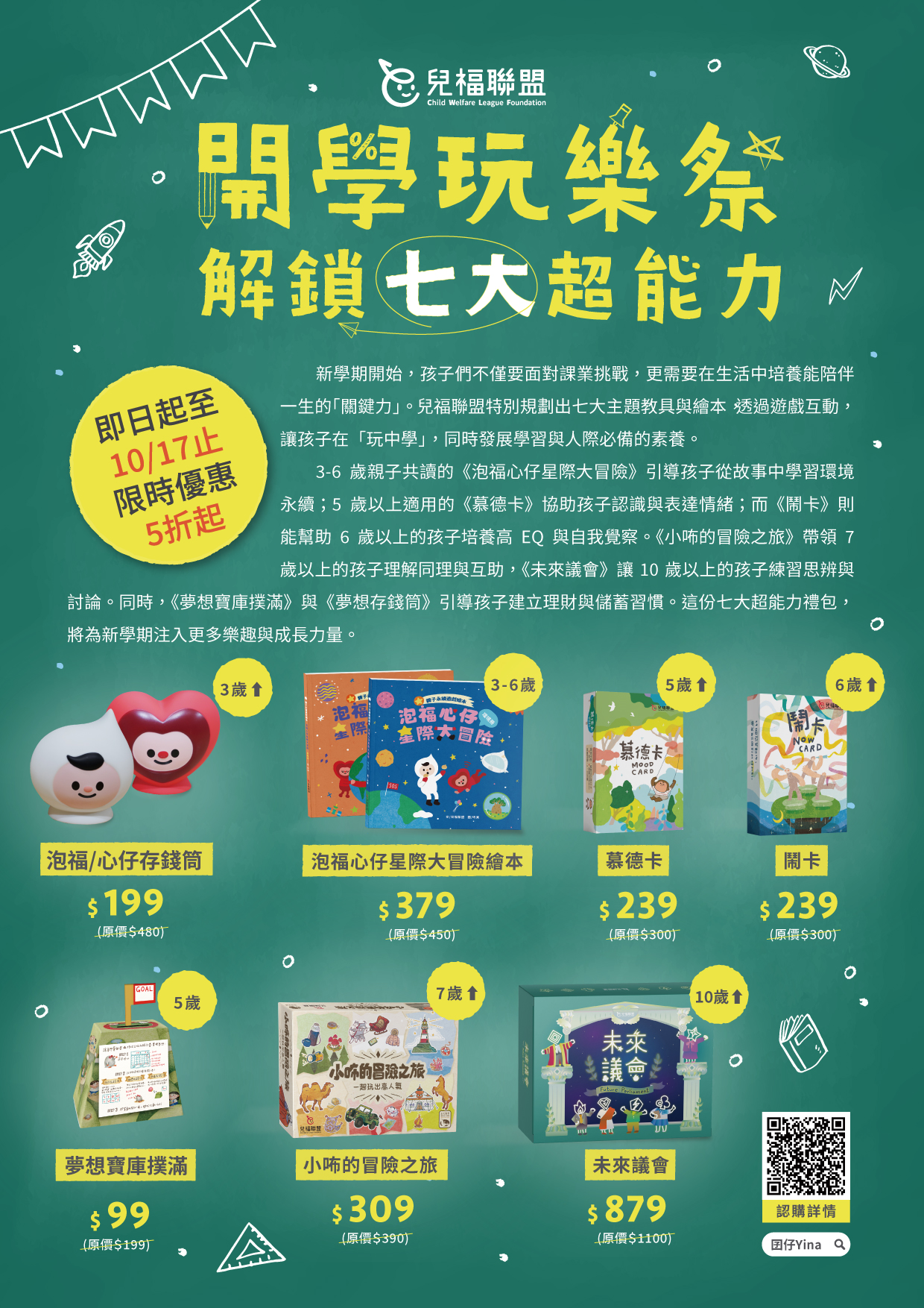 兒福聯盟「開學玩樂祭·解鎖七大 超能力」成長禮包